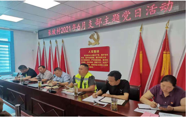6月23日,驻村工作队在长坡村委会二楼会议室参加2021年6月长坡村支部主题党日活动及当前村委换届、安全生产等工作布置。