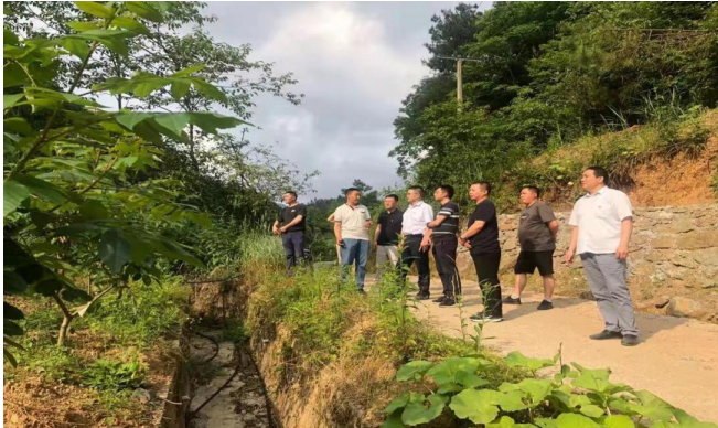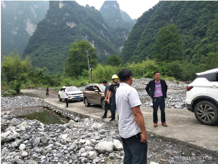 6月11日, 同“村两”委陪同县交通局和相关施工单位到百溪河查看被冲毁道路,并商定维修方案。